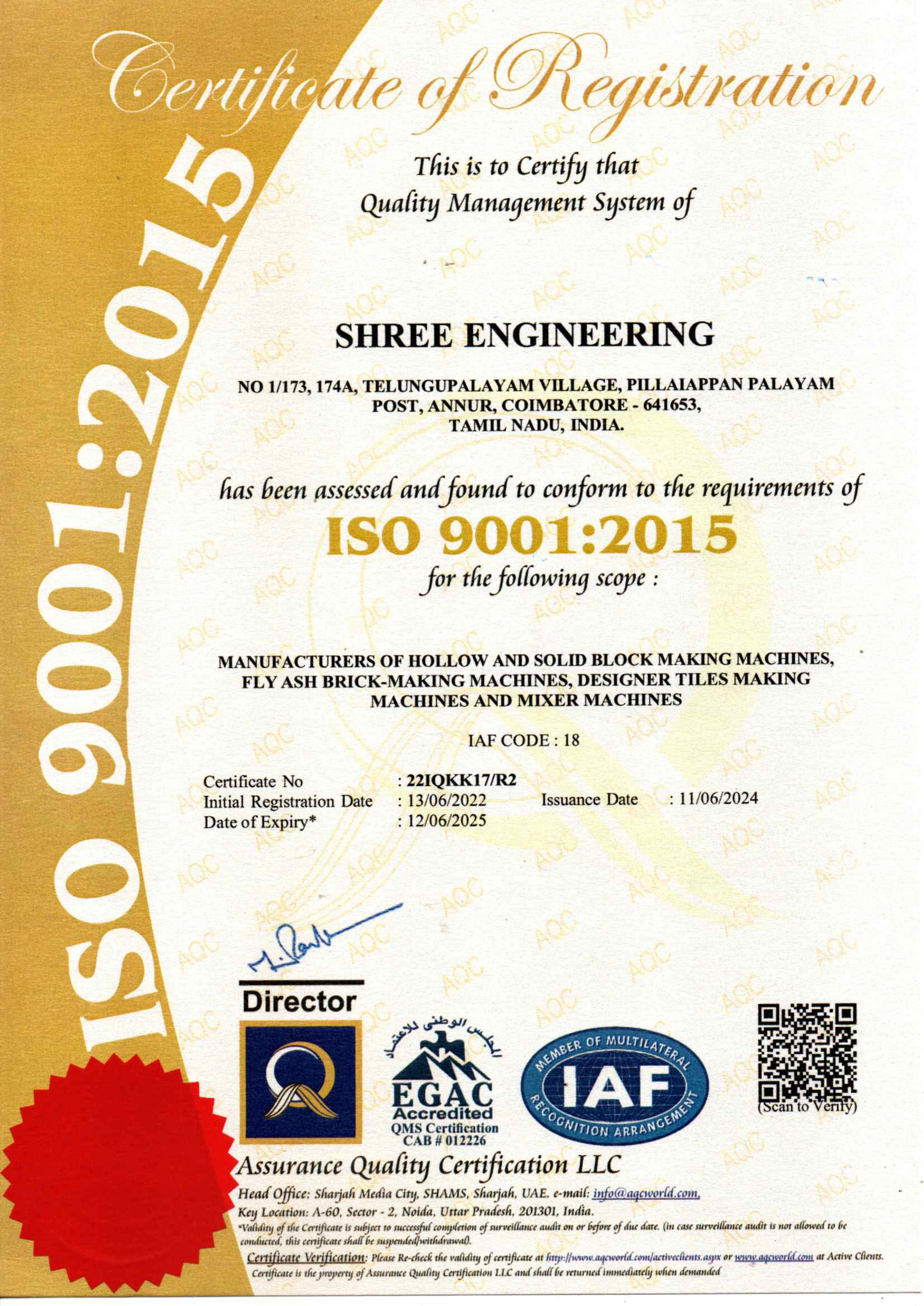 We are committed to delivering superior-quality machines and services that consistently meet or exceed customer expectations. As an ISO 9001:2015 certified company, we adhere to international standards and best practices across every stage of our manufacturing process. Our approach is rooted in continual improvement, ensuring our systems, technologies, and practices evolve to meet the ever-changing demands of the construction industry. Guided by our dedicated Quality Assurance Team, we rigorously monitor and control quality at every phase-from technical precision to the durability of our machines-ensuring our customers always receive the finest machinery built to last.